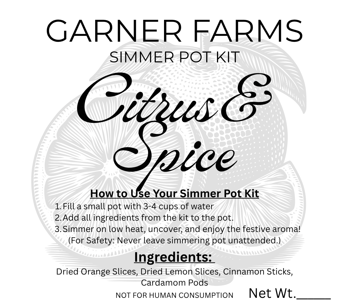 Citrus & Spice- Dried Orange Slice, Dried Lemon Slice, Cinnamon Stick, Cardamom Pods.